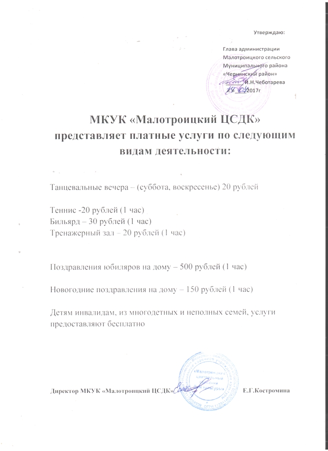Малотроицкий центральный сельский Дом культуры структурное подразделение Муниципального бюджетного учреждения культуры «Чернянский районный центр народного творчества и культурно-досуговой деятельности»